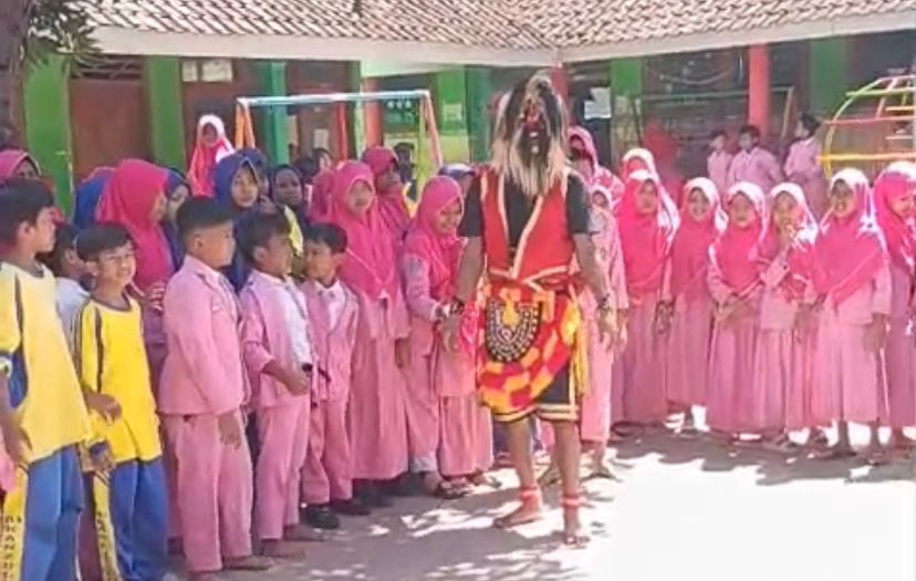 Kehadiran Bujang Ganong dalam kegiatan pendistribusian MBG menjadi metode pendekatan kreatif yang mudah diterima anak-anak. Tokoh tersebut menyapa siswa satu per satu sambil membagikan paket MBG dengan gerakan lincah dan interaksi yang ceria.